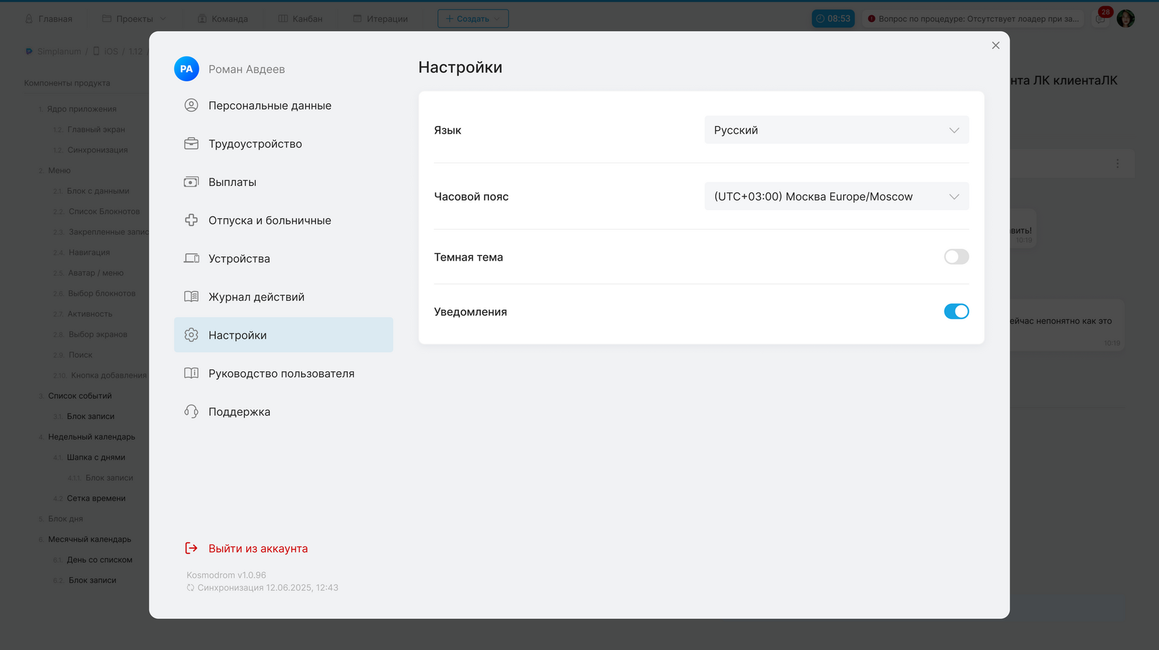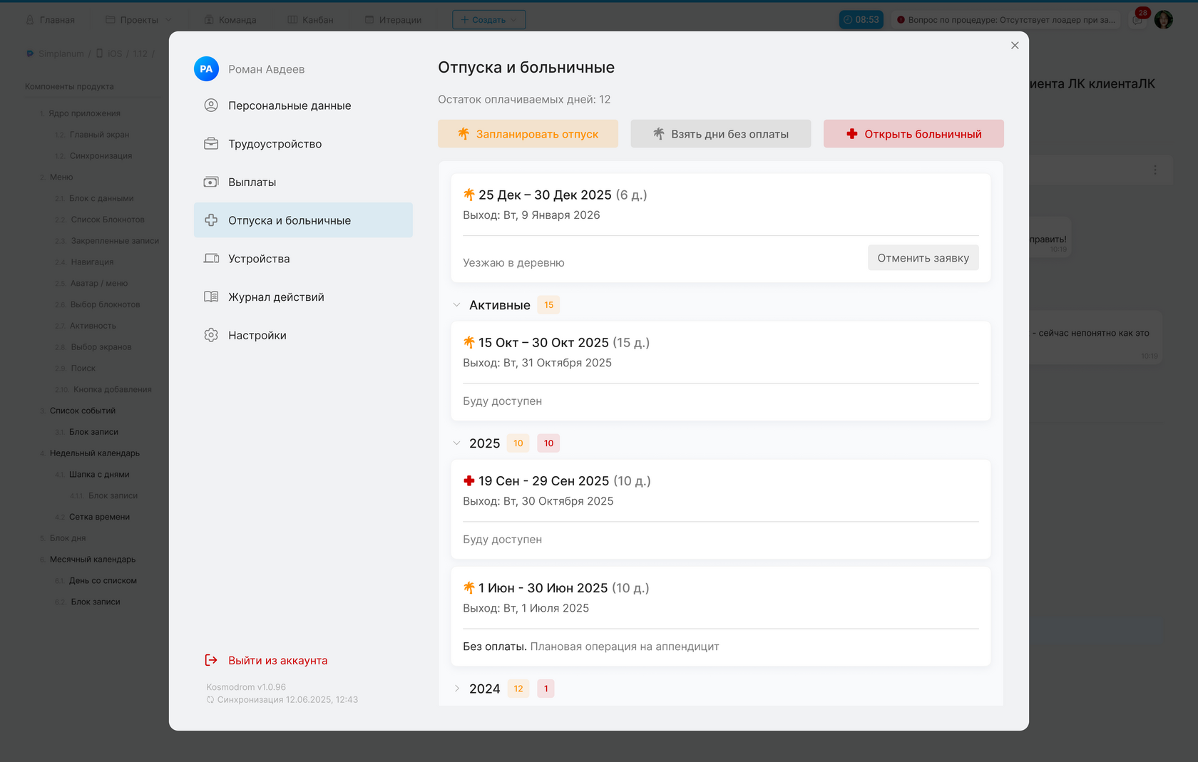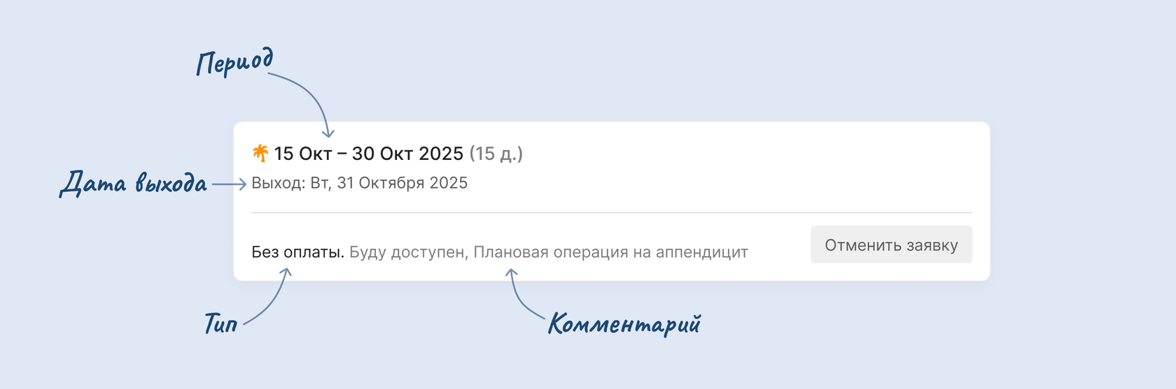 Отмена заявки на отпуск