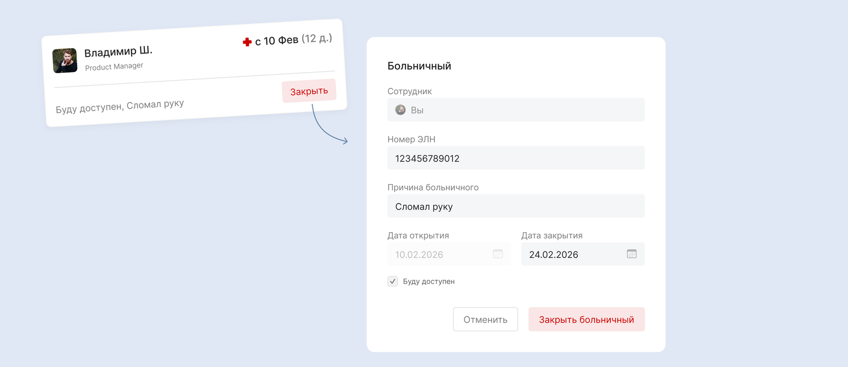 Расчет доступных отпускных дней