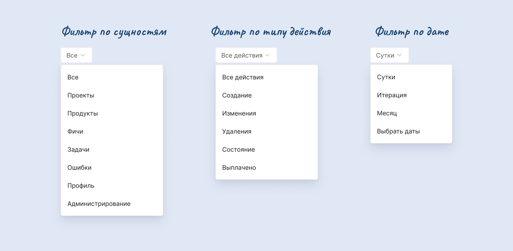 Фильтр по типу действия