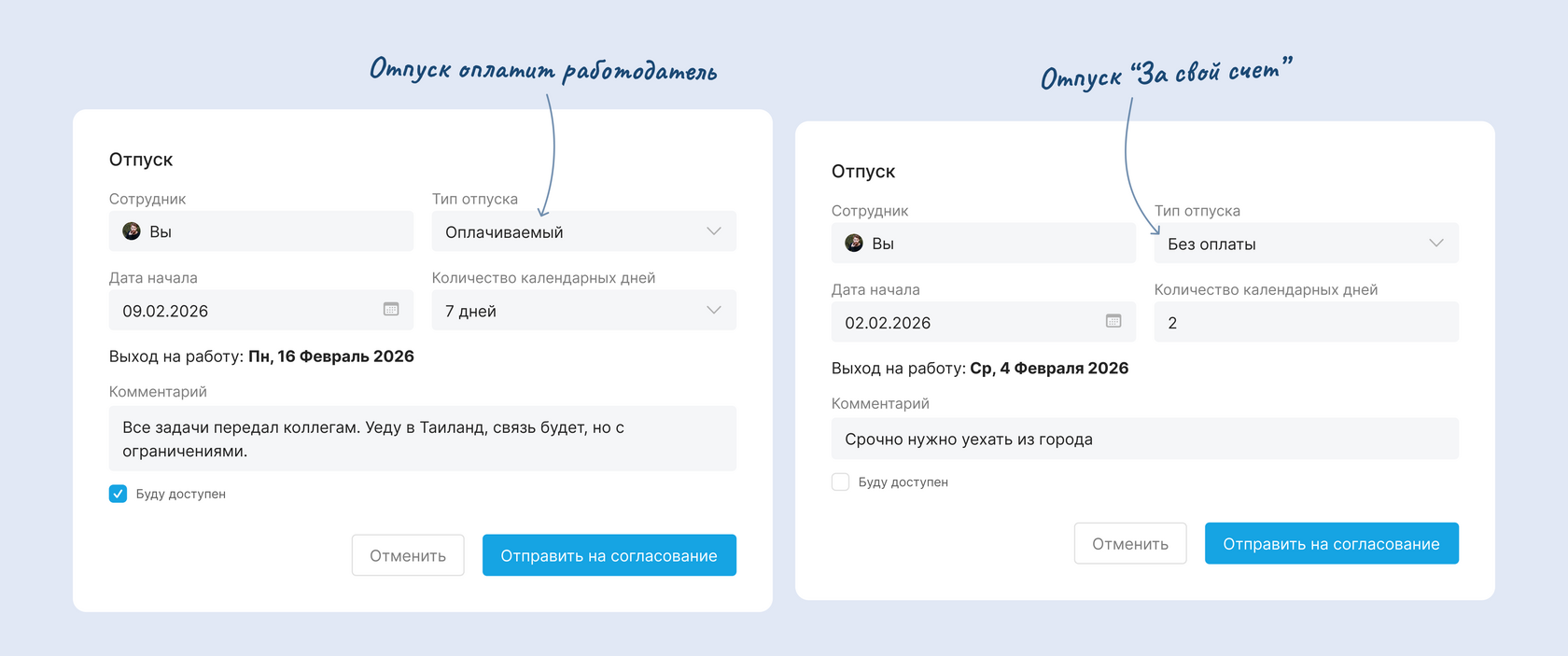 Тип отпуска